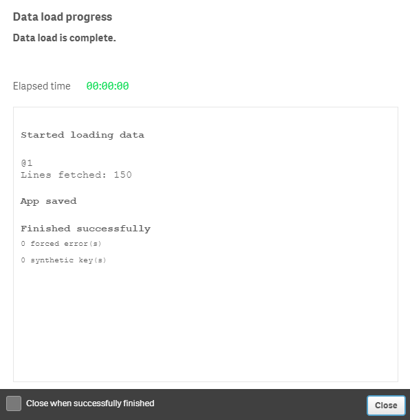 - When the Data load button is clicked on the right side, Qlik Sense will call the RapidMiner web service and RapidMiner Server will execute the process behind the web service. Depending on the complexity of your process and the amount of data, this step can take some time. Once RapidMiner server has executed the process and all data is received by Qlik Sense, a new window will open.