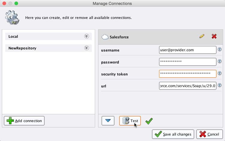 Salesforce Connection.Fill in the connection details of your Salesforce configuration: