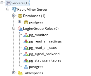 CREATE USER rm_user WITH ENCRYPTED PASSWORD 'rm_password'; GRANT ALL PRIVILEGES ON DATABASE rapidminer_server TO rm_user;