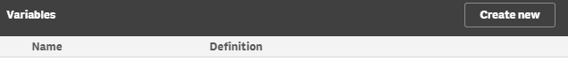 - To create Qlik Sense Variable go to Edit on the dashboard sheet and select the Variables button on the left bottom. The following window will pop up.