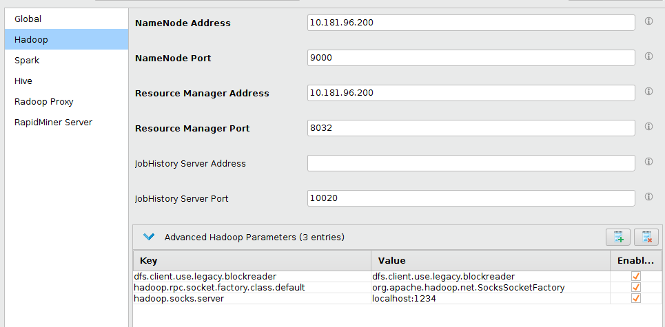 Enabled: yesAdvanced Hadoop parameters Key: hadoop.socks.server