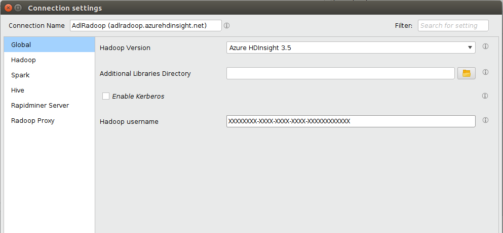 Connecting to an Azure HDInsight 3.6 cluster using Radoop Proxy