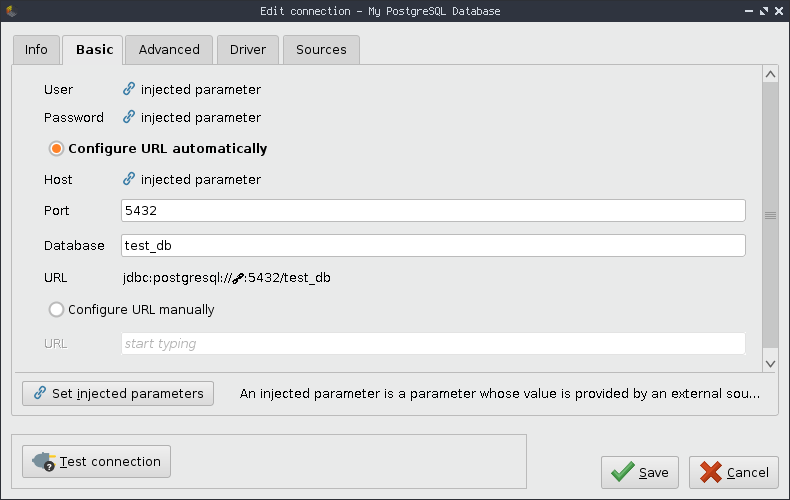 user,passwordandhostas injected by clicking on the Set injected parameters button in the Basic tab. Be sure to select RapidMiner Server as source for the injected parameter. This will then use your RapidMiner Server.